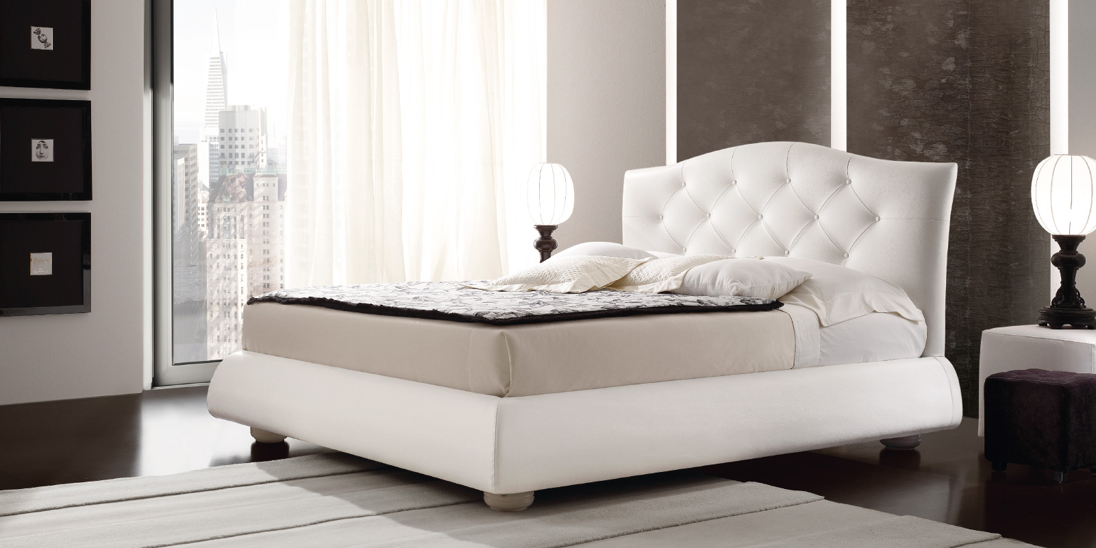 Letto imbottito con testata non sfoderabile con bottoni rivestiti in tinta o con Swarovski, realizzato con struttura interamente smontabile e giroletto sfoderabile. Le fasce sono realizzabili sagomate. Il letto è completo di rete con doghe uniche in legno di forte spessore ed ha in dotazione n. 4 piedini tipo 4. Disponibile nelle dimensioni matrimoniale, alla francese, una piazza e mezzo e singolo e nelle versioni fisso, contenitore a una alzata e contenitore a doppia alzata modello pratico.